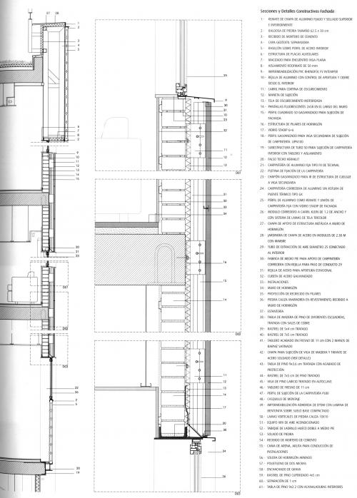 The new building for the Dexeus Institute in Barcelona is one of the cases in which the openings completely divide the façade into horizontal strips. Consequently, the façade is not mechanically interrupted by the main structure but by the openings. On each floor, the parapet made of reinforced brickwork is supported on the slab and stabilized against horizontal loads fixed to the pillars, while the wall above the window hangs inserted into a steel structure from its upper slab. The horizontal strip of openings needs to allow for differential movements of each part of the façade.