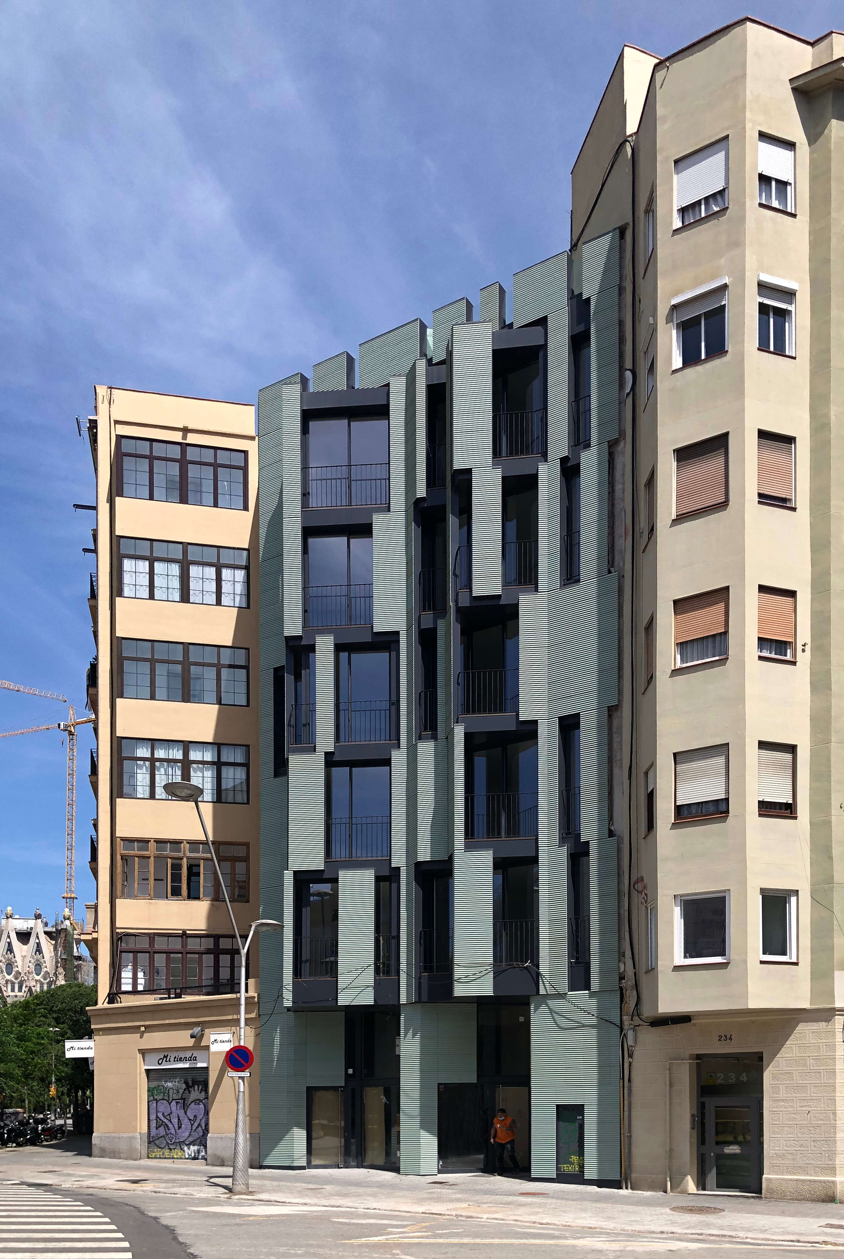Perhaps it is a pity not to have combined this ribbed ceramic cladding with slats made of the same material. Be that as it is, we congratulate the decision to resort to a textured cladding instead of the far too common flat clay panels.